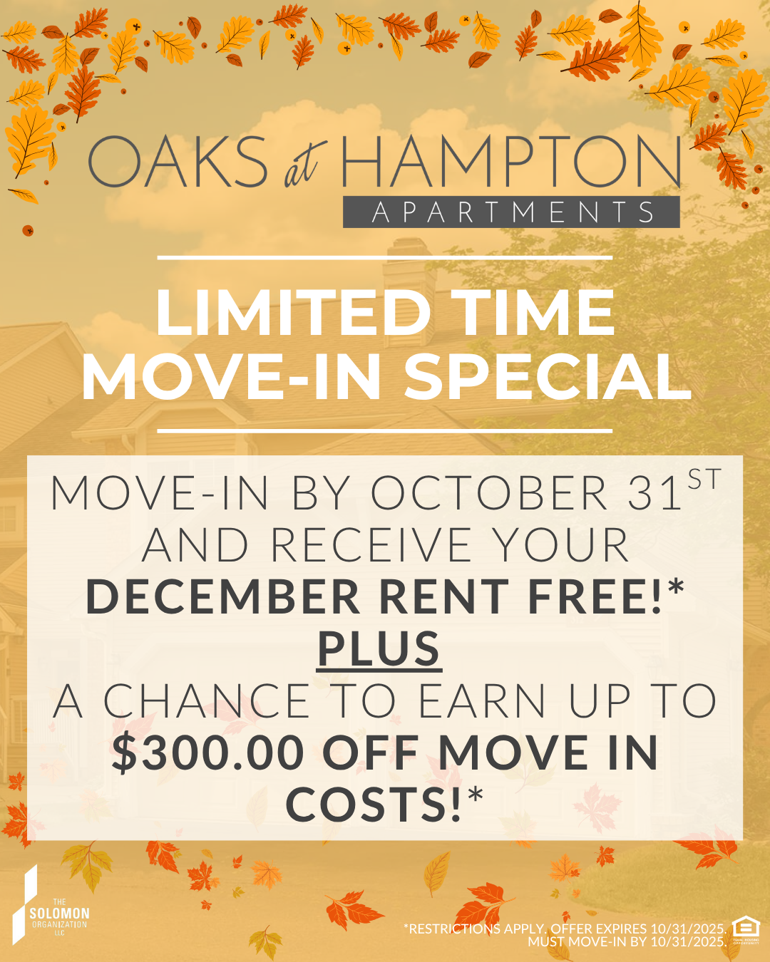 *Restrictions Apply, must move in by 10/31/25.